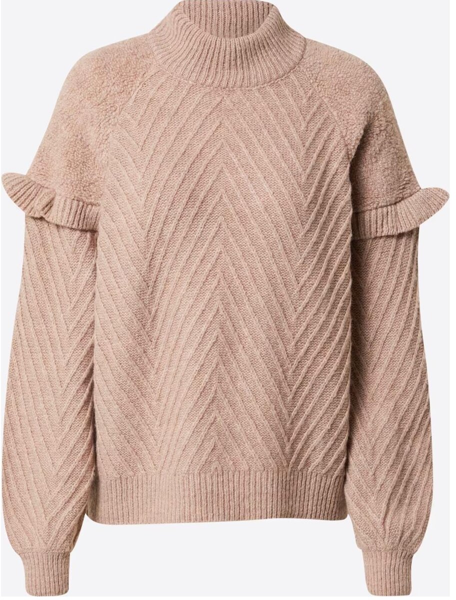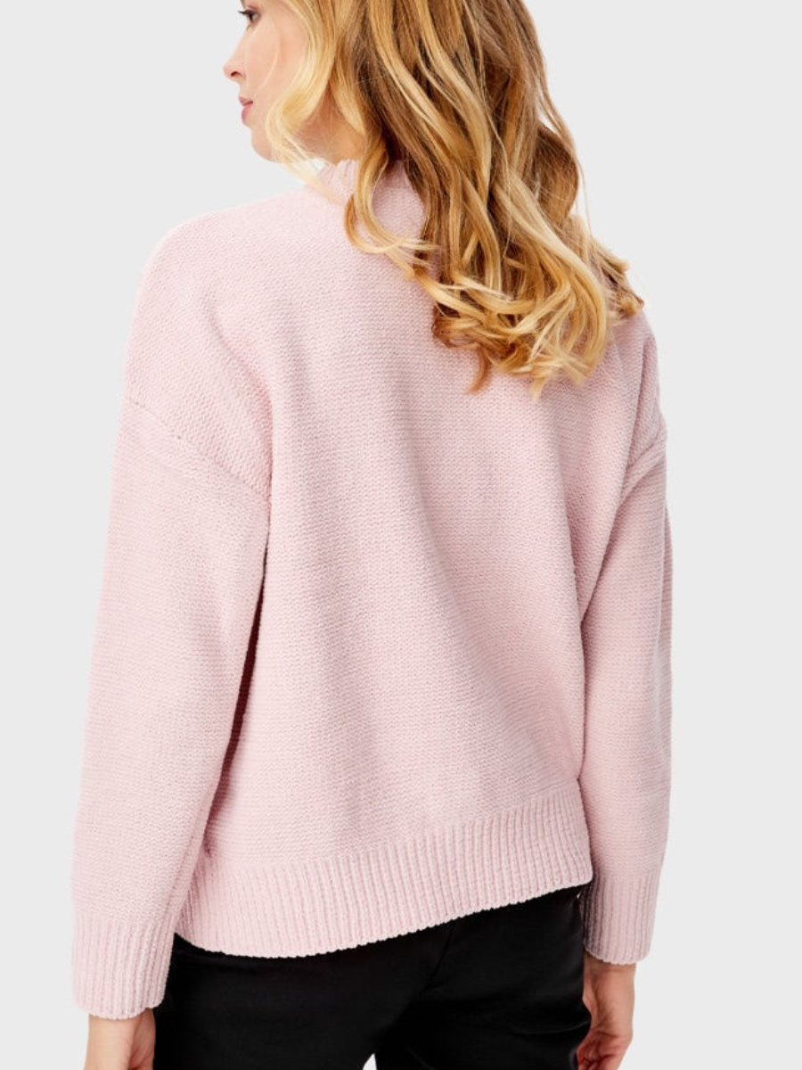 Третий свитер пудрового цвета привлекает внимание широкими и интересными косами.